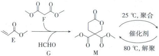 5.B 高分子材料 E中含有碳碳双键,可使溴的四氯化碳溶液褪色,A正确;E、F、G合成M的过程中会生成甲醇而不是甲酸,B错误;P的链节中含有酯基,碱性条件下能发生水解反应而降解,C正确;P解聚生成M的过程中,主链上断开C—O键,成环形成C—O键,D正确。