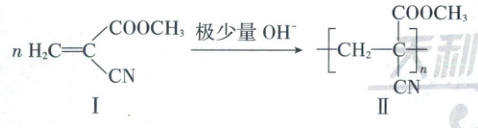 4.C 有机物的结构与性质 I中含有碳碳双键、氰基、酯基共3种官能团,A错误;II不溶于水,B错误;常温下Ⅱ为固态,C正确;该反应为加聚反应,D错误。