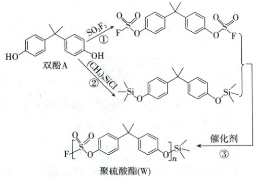 13. (2024·新课标卷,6分)一种点击化学方法合成聚硫酸酯(W)的路线如下所示: