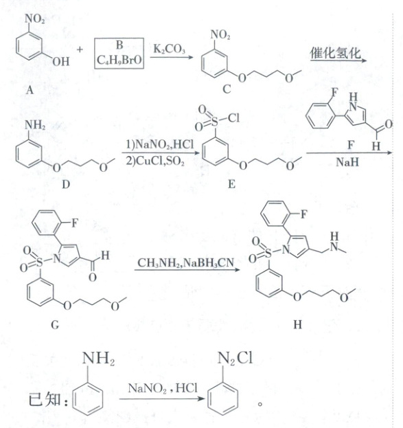 (7)结合合成$\boldsymbol{{H}}$的相关信息,以