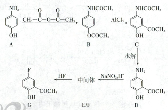(6)E存在一种含羰基异构体F,二者处于快速互变平衡。F与HF反应可生成G,写出F的结构简式_______。
