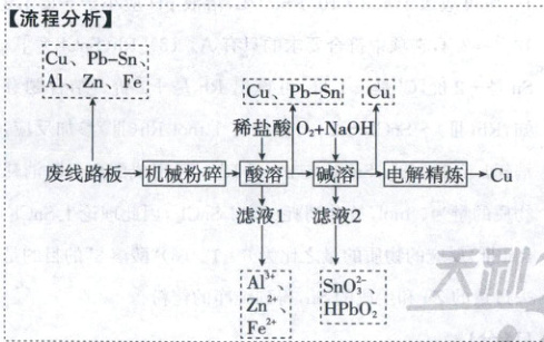 2.(2024·福建卷,4分)从废线路板(主要成分为铜,含少量铅锡合金、铝、锌和铁)中提取铜的流程如下: