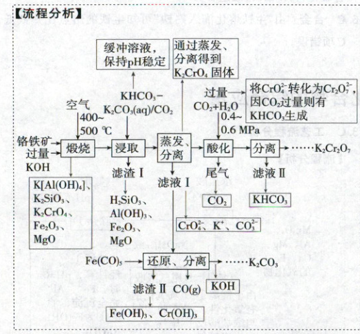 (2)$4\mathrm{Fe(CrO_2)_2 + 7O_2 + 16KOH \xlongequal{400 \sim 500 ^{\circ}C} 8K_2CrO_4 + 2Fe_2O_3 + 8H_2O}$