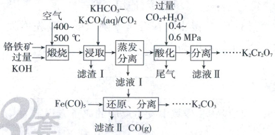 。(2)煅烧工序中${Fe(CrO_{2})_{2}}$反应生成${K_{2}CrO_{4}}$的化学方程式: