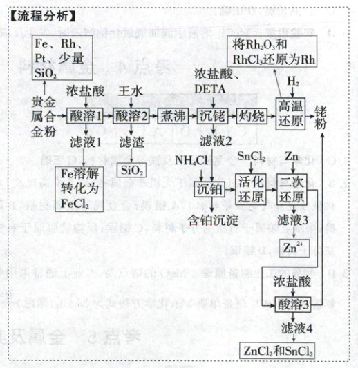 (6)“酸溶3”的目的是除去过量的Zn和生成的Sn,得到纯净的铑粉。