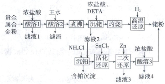 (1)“酸溶1”的目的是除去合金粉中的铁,使其与贵金属分离。