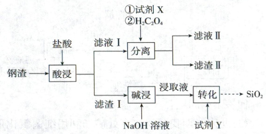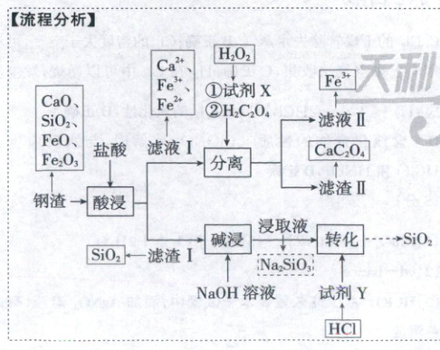 1.(2025·山东卷,4分,不定项)钢渣中富含${CaO}$、${SiO_{2}}$、${FeO}$、${Fe_{2}O_{3}}$等氧化物,实验室利用酸碱协同法分离钢渣中的${Ca}$、${Si}$、${Fe}$元素,流程如下。