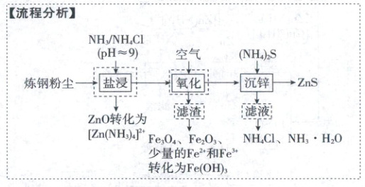 C.“沉锌”过程发生反应${[Zn(NH_{3})_{4}]^{2+} + 4H_{2}O + S^{2-}\xlongequal{}ZnS\downarrow + 4NH_{3}· H_{2}O}$