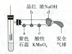 6. (2022·广东卷,2分)若将铜丝插入热浓硫酸中进行如图(a~d均为浸有相应试液的棉花)所示的探究实验,下列分析正确的是 (