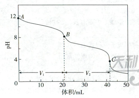 ⅰ.到达第一个滴定终点B时消耗盐酸$V_{1}\ mL$,到达第二个滴定终点C时又消耗盐酸$V_{2}\ mL$。$V_{1}=V_{2}$,所得产品的成分为_______(填标号)。