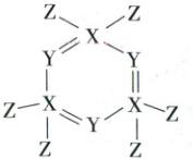 8. (2025·陕晋青宁卷,3分)一种高聚物$ {(XYZ_{2})_{n}} $被称为“无机橡胶”,可由如图所示的环状三聚体制备。$ {X} $、$ {Y} $和$ {Z} $都是短周期元素,$ {X} $、$ {Y} $价电子数相等,$ {X} $、$ {Z} $电子层数相同,基态$ {Y} $的$ 2{p} $轨道半充满,$ {Z} $的最外层只有1个未成对电子。下列说法正确的是 (