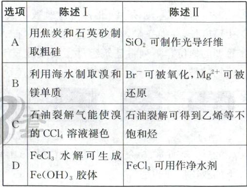 14. A 一些重要的工业生产知识及应用 用焦炭还原二氧化硅可以制取粗硅,二氧化硅可用作光导纤维,二者均正确,但二者没有因果关系,A 符合题意;故选 A。