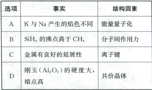 2.C 物质的结构与性质 金属有良好的延展性是因为金属晶体含有金属键,C错误。