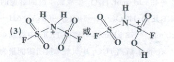 (3)${B}$溶于某溶剂发生自耦电离($2{B⇌ A + F}$),阳离子${F}$的结构式为。