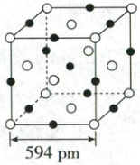 。设$N_{A}$为阿伏加德罗常数的值,则该晶体密度为$\frac{4×(207 + 32)}{N_A×594^3×10^{-30}}$