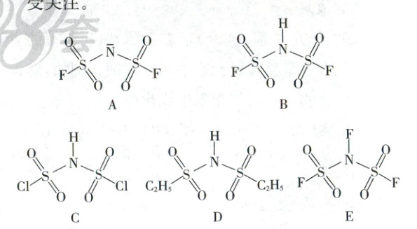 3. (2024·海南卷,14分)锂电池是新型储能系统中的核心部件。作为锂电池中用到的电解质材料之一,${Li - bfsi}$(阴离子${bfsi^{-}}$结构见下图A)深受关注。