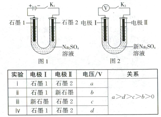 【实验剖析】电解Na₂SO₄溶液过程中,石墨1为阳极,石墨2为阴极,电解过程中生成的氧气和氢气分别附着在石墨1、石墨2电极上,然后用吸附有氧气的石墨1电极、吸附有氢气的石墨2电极和新石墨电极依次完成实验i→iv,据此分析。