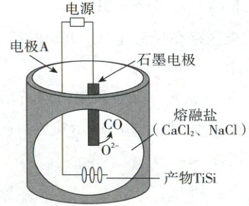 13.(2023·1月浙江卷,3分)在熔融盐体系中,通过电解${TiO_{2}}$和${SiO_{2}}$获得电池材料(${TiSi}$),电解装置如图,下列说法正确的是 (