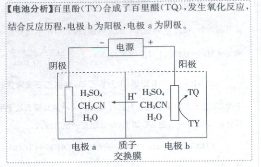 8. 【学术探索】(2025·陕晋青宁卷,3分)我国科研人员采用图示的电解池,由百里酚(TY)合成了百里醌(TQ)。电极b表面上的主要反应历程见图(灰球表示电极表面催化剂)。下列说法错误的是(