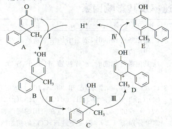 B错误;C$\longrightarrow$D,苯基发生了位置迁移,而甲基没有,说明苯基的迁移能力强于甲基,C正确;化合物E中酚羟基可发生氧化反应,苯环可发生加成反应和取代反应,D正确。