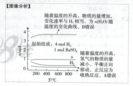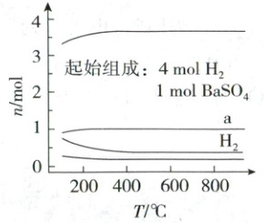 $BaSO_4(s)+4H_2(g)\rightleftharpoons BaS(s)+4H_2O(g)$在不同温度下达平衡时,各组分的物质的量$(n)$如