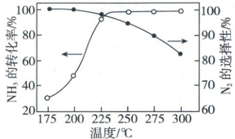 C.催化氧化除去尾气中的${NH_{3}}$应选择反应温度高于$250\ ^{\circ}C$