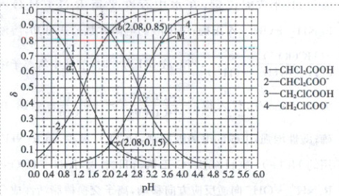 )A.曲线$M$表示$\delta({CHCl_{2}COO^{-}})~{pH}$的变化关系