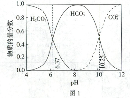 )A.由图1,${pH}=10.25$,$c({HCO^{-}_{3}})=c({CO^{2-}_{3}})$