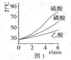 ③ 某小组研究了$3$种酸对反应$a$的催化作用。在相同条件下,向反应体系中滴加等物质的量的少量酸,测得体系的温度$T$随时间$t$的变化如图$1$。据图可知,在该过程中,_______。