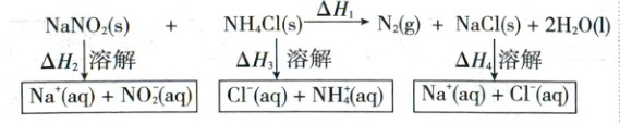 Ⅱ. $\mathrm{NaNO_2(s) \xlongequal{ } Na^+(aq) + NO_2^-(aq)}$ $\Delta H_2$;