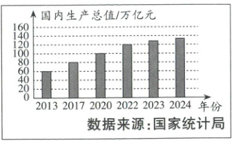 (2025·山西)右面是我国部分年份国内生产总值统计图。由此可以推断出(