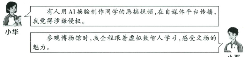 3. (2025·临考抢分)如今,人工智能(简称AI)正以前所未有的速度融入我们的生活。小华和小晋就如何使用AI展开交流:
