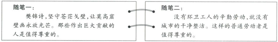 15.D 【解析】随笔一提到作出巨大贡献的樊锦诗值得尊重,随笔二强调普通环卫工人同样值得尊重,体现了尊重不取决于个人的成就大小、社会地位高低,说明尊重他人要平等对待他人,D符合题意;自觉维护秩序、冷静处理矛盾、勇于承认过错都不符合题干主旨,故ABC不符合题意。