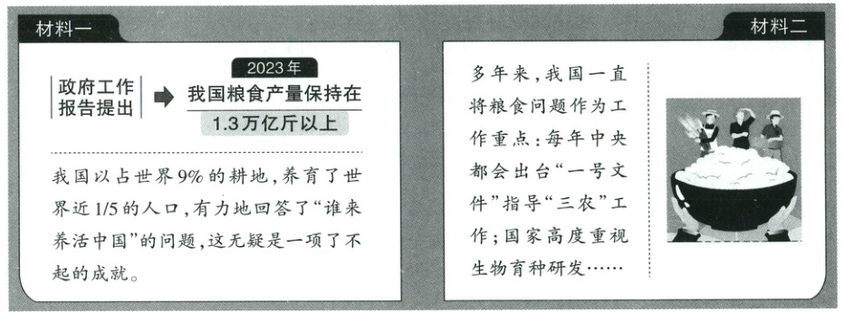 (2)示例:中国人的饭碗端牢在自己手里(“粮食安全常记在心”等符合题意的答案也可)