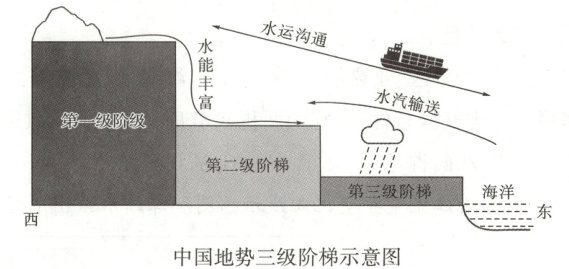 (2)我国地势对河流的影响:河流自西向东流入海洋;河流流经地势阶梯交界处,落差大,水流湍急,水能资源丰富。对降水的影响:有利于海上湿润气流深入内陆,形成丰沛的降水。