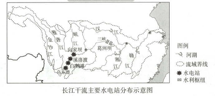 金沙江白鹤滩水电站累计发电量突破1000亿千瓦时,相当于减排二氧化碳约8240万吨,保障了江苏、浙江等长三角地区绿色发展和民生用电需求。读长江干流主要水电站分布示意图,完成3、4题。