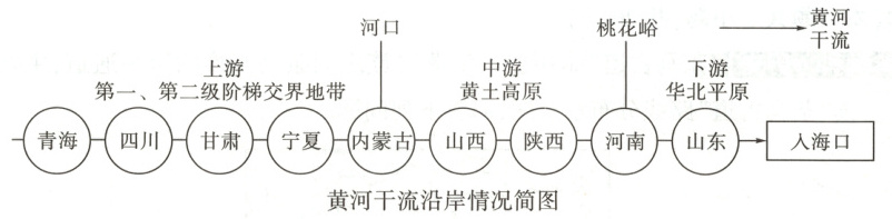 【跨学科·语文】黄河之“黄”,实为泥沙,古籍有载:“黄河斗水,泥居其七。”黄河每年都会携带大量泥沙,其中大部分流入大海,剩下部分则长年留在黄河下游。下图为黄河干流沿岸情况简图。据此完成5、6题。
