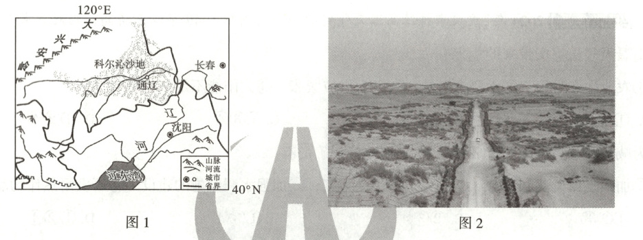 (1)根据材料可知,近百年来,由于自然条件的影响,尤其是清朝时的过度放牧和20世纪50—70年代的农垦,科尔沁最终演变成黄沙漫漫的沙地,说明科尔沁沙地从水草丰美的大草原演变为沙地的主要原因是过度开垦、过度放牧。