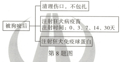 8. (2025·德州一模)如图所示的是某人被狗咬后的处理和治疗情况,下列叙述正确的是 (