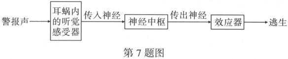 7. 为了让师生掌握更多的逃生和救助方法,许多学校会定期开展逃生演练。演练过程中的反射活动如图所示,下列叙述错误的是 (