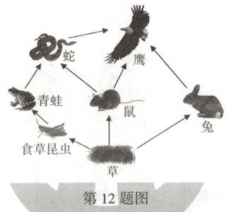 12. 生物与环境保持着十分密切的关系,并形成了多种多样的生态系统。如图所示的是某草原生态系统部分生物之间的关系图,请据图回答下列问题。