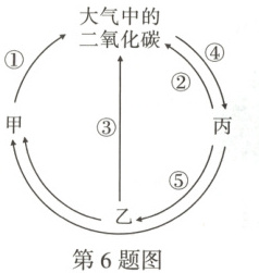 6. 我国政府明确提出,努力争取2060年前实现碳中和。如图所示的是自然界中碳循环的简图,下列叙述正确的是(