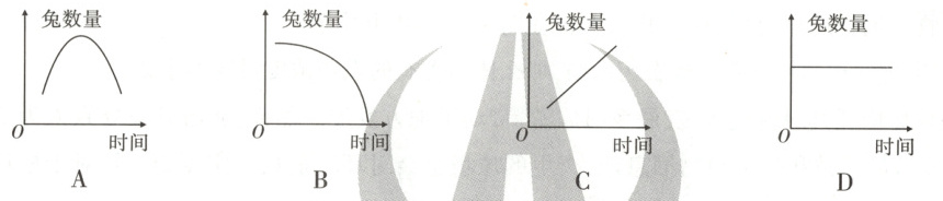 7. 某生态系统中存在一条“草→兔→狐”的食物链,假如把狐全部捕杀,下列可以正确表示较长一段时间内,兔数量变化趋势的曲线是(