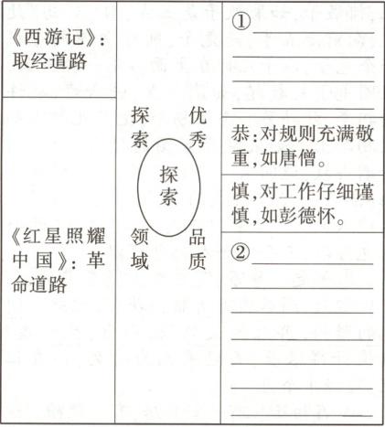 (2)①示例:悟:经历磨难,初心不改;善于反思,努力改变,如孙悟空。 ②示例:志:以探寻民族解放的革命道路为己任,如毛泽东。 思:头脑冷静,善于分析推理,讲究实际经验,如周恩来。