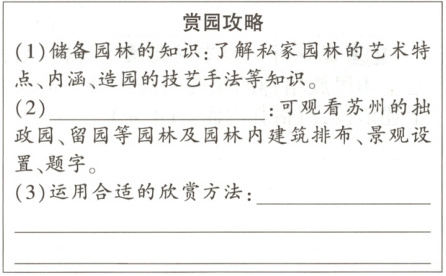6. 根据三则材料将“赏园攻略”补充完整,以指导游客更好地欣赏私家园林。(6分)