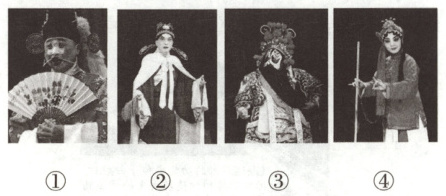 (3)下面是小文搜集的京剧“四大行当”剧照,请选择恰当的序号填空。(4分)