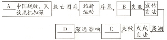 (3)图中D指的是戊戌变法所起到的重要作用,请你试着用简短的语言进行说明。(3分)