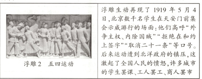 (2)根据材料二,指出浮雕2所示历史事件取得初步胜利的原因。(3分)结合所学知识,指出这一历史事件发生的导火索。(3分)