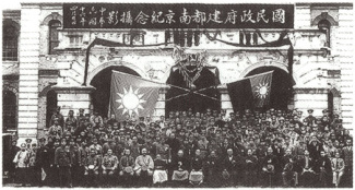 4.D 【解析】图片中“国民政府建都南京纪念摄影”“中华民国十六年”等内容反映了1927年南京国民政府宣告成立的历史,D项正确;中华民国十六年指的是1927年,不是1926年,排除A项;南京国民政府成立时,张学良尚未宣布“改易旗帜”,中华民国还没有实现形式上的统一,排除B项;因为蒋介石叛变革命,国民革命的目标并未实现,排除C项。