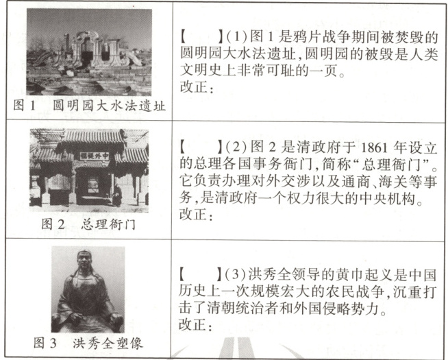 (3)×,“黄巾起义”改为“太平天国运动”。